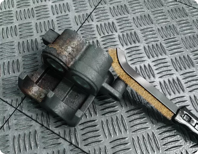 Очистите тормозные суппорта и осмотрите пыльники, поршни и направляющие, нанеся смазку, если это необходимо. Также очистите крепёжные места тормозных колодок.
