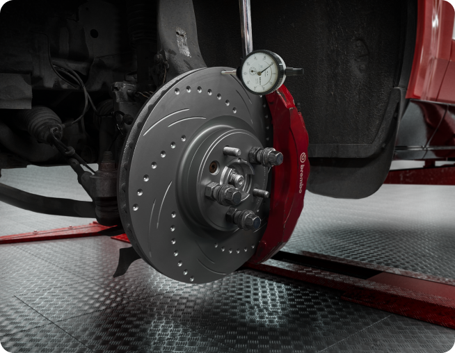 Воспользуйтесь индикатором для измерения биения. Это позволит определить правильность установки. Биение должно быть менее 0,005 мм. В случае превышения показаний необходимо переустановить тормозной диск. Перед переходом к следующему шагу всегда проверяйте правильность показаний.